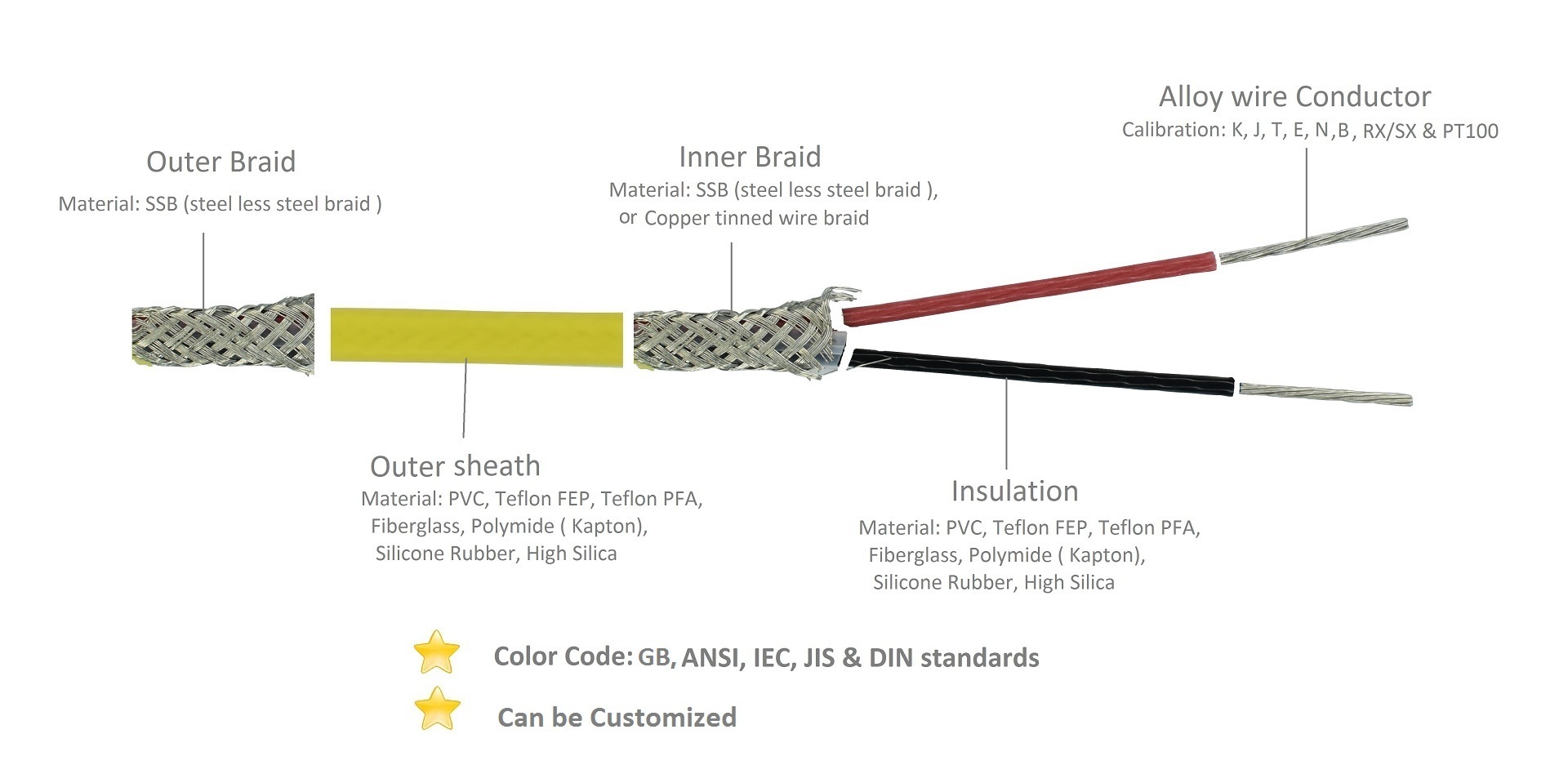 High temperature cable, TC cable, RTDs cable, Teflon cable, Silicone cable, etc.
